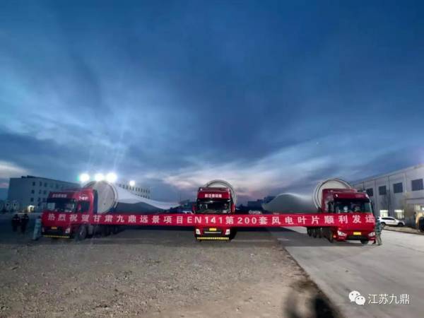 第200套EN141葉片的成功發運,不僅標志著九鼎新材邁入了國內較長風電葉片的批量生產過程,也將進一步推動公司在風電研發、制造方面實現更大的發展與貢獻。(甘肅九鼎 孫宏偉)